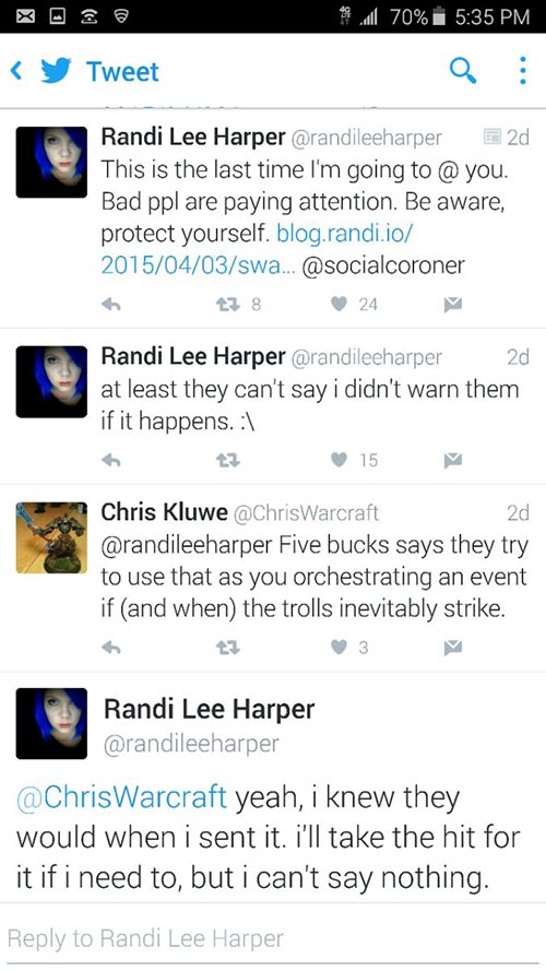 I grew silent. I didn’t know what to say to someone telling me that they thought such internet aggression was light fun.I told her I appreciated the feedback and that she had given us an idea. That maybe we should let celebrities and victims opt out somehow if they knew their attackers. It felt like a good way to end the conversation positively.